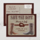 Temático ocidental salve o artigo de data com botas de cowboy e uma corda com nós para significar "amarração do nó". Fundo sudeste com castanho escuro "salve a data" na fonte ocidental. O verso é facilmente personalizado para que você possa criar seu próprio texto. Também estão disponíveis selos postais correspondentes ao cartão postal.