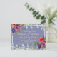 Este deslumbrante "Save the Date" em aquarela apresenta um fundo de lavanda claro com flores roxas exuberantes, rosa escuro e um toque de vermelho, cercado por folhagens e folhas de eucalipto. A letra dourada e os toques de caligrafia são um acompanhamento perfeito para as belas flores. Uma escolha de design encantadora para definir o tom da celebração do seu casamento. Para qualquer dúvida sobre o design ou personalização adicional e/ou itens correspondentes, basta enviar um e-mail para charmdesignstudio@rcn.com e teremos prazer em ajudar. Visualize o link da coleção nesta página para ver todos os itens correspondentes neste lindo design.