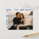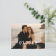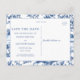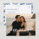 Procurando uma maneira elegante de anunciar o seu casamento? Este cartão-postal personalizável de "save-the-date" permite que você faça o upload da sua foto de noivado favorita, mantendo o design sofisticado e moderno. Com uma disposição de tipos elegante que combina com roupas mais escuras e ambientes de praia, o verso apresenta um padrão azul de chinoiserie atemporal para um acabamento clássico. Perfeito para casamentos na costa, casais modernos ou qualquer pessoa que queira um toque refinado e pessoal.