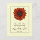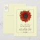 Uma gravação do cartão postal de data com um fundo de branco desligado. Imagem de girassol laranja. Personalize com suas informações em castanho escuro e preto. Procure por convites e mais na Paperie de Jill.