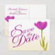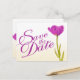 De Anúncio Casamento Salve a data Cartão postal tulipas roxas