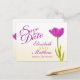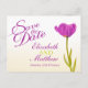 De Anúncio Casamento Salve a data Cartão postal tulipas roxas