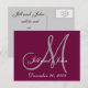 Anúncio de Casamento Cartão Postal Personalizável com Data, Nomes e Monograma Inicial