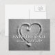 Guardar o cartão postal do casamento | Coração desenhado na neve. Imagem fotográfica em preto e branco com desenho romântico do coração. Excelente para lembrar os convidados do seu casamento. Noiva personalizável e nome de noivo com texto elegante.