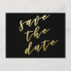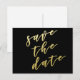 NewParkLane - Postcard Elegante, com 'Salve a data' em tipografia elegante de folha de ouro falso, contra um fundo preto chique. Fácil de personalizar no Zazzle com sua própria cor de fundo para um design personalizado.