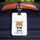 Arrumem a bolsa do bebê do seu urso com uma etiqueta que mostra o orgulho da escola. Este design bonitinho nas cores verde e amarela da escola com um adorável ursinho bebê - completo com gravata de bolso. Personalize com o nome do seu bebê na frente e atrás, junto com as informações de contato dos pais. Perfeito por deixá-lo no berçário da igreja ou na creche.
