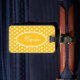 Meninas modernas, cor-de-rosa brilhante, cor-de-rosa, cor-de-rosa brilhante, cor-de-rosa, com etiqueta de bagagem gráfica. Perfeito para férias e viagens. Adicione o seu nome e inicial à frente da marca e personalize o verso desta marca com o seu nome e endereço. Desenvolvido exclusivamente por Sarah Trett para www.mylittleeden.com no zazzle.