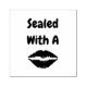 Carimbo que diz "selado com um" e símbolo de lábio para o "beijo"
