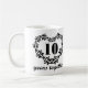 Esta 10o caneca bonita da bebida do drinkware do presente do aniversário manda 10 anos junto citar com um logotipo bonito do coração do filagree para comemorar sua ocasião especial. Consiga duas canecas como um presente para que o casal feliz comemore seu amor. De nossa coleção dos aniversários.