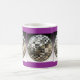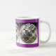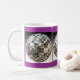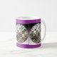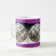 Envoltório de prata de três bolas do espelho em torno desta caneca temático do disco legal e original. É mostrada uma caneca branca com uma beira azul e uns acentos roxos, mas muitos estilos e cores das canecas estão disponíveis. Para mudar a cor azul e a beira roxa groovy do fundo apenas clique sobre "personalizam-na" e clicam-na então sobre "editam" e "fundo" para mudá-los então a seu gosto. Obtenha pronto para party! Faz um presente do divertimento!