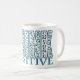 A cerceta pensa que a caneca positiva é a arte da palavra que caracteriza muitas palavras associadas com o pensamento positivo. É perfeita para todo o optimista.