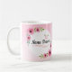 Deixe sua Nana saber o special ela é com este design original da tipografia do roteiro da escova que caracteriza a mensagem, "à melhor Nana no mundo." O design é acentuado com as flores cor-de-rosa bonitas da aguarela no fundo cor-de-rosa borrado. O tipo tem o swash cor-de-rosa e o acento adicional da flor. Para trás da caneca tem flores adicionais com placeholder para o nome da sua Nana. Os acentos podem ser ajustados para caber nossas necessidades.