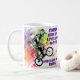Uma caneca cristã do tema para o verso da bíblia actua 17:28. Isto tem o tema de uma montanha ou de uma bicicleta do bmx. A escritura é para nele que nós vivemos e nos movemos e nos temos nosso ser