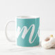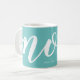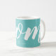 Simples tipografia Mãe EST. Mug em azul aqua. Personalize com os anos de nascimento das crianças.