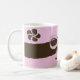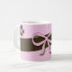 Esta caneca caracteriza flores de um stripe* do marrom do café em um fundo cor-de-rosa. Tudo amarrado acima com um arco cor-de-rosa grande.