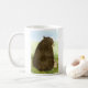 A ilustração lunática da tinta e da aguarela de 2 amigos animais, uma Big Bear e um coelho pequeno, com algumas palavras na amizade decora uma caneca de sua escolha.
