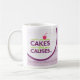 Todos os ingredientes e traços que são uma parte dos bolos para causas são envolvidos em torno desta caneca de café bonita! Aprecie sua bebida favorita, ao apoiar bolos para causas com uma parcela da venda que vai diretamente ajudar a apoiar nossa missão de curar nossa comunidade um copo do açúcar em um momento!