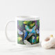 Mostre o amor do parakeet do budgie no trabalho com esta caneca de café original apenas para fãs e proprietários do papagaio. Este design é um impressão de uma pintura original por Carolyn McFann do estúdio de ronrom de dois gatos.