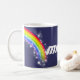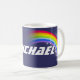 Arco-íris brilhante e colorido "que seus" miúdos conhecidos agridem. Presente perfeito para uma criança vibrante. A caneca lê: "Michael" ou personaliza esta caneca com o nome de sua escolha até 8 letras. Caneca projetada exclusivamente por Sarah Trett.