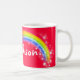 Arco-íris brilhante e colorido "que seus" miúdos conhecidos agridem. Presente perfeito para uma criança vibrante. A caneca lê: Addison ou personaliza esta caneca com o nome de sua escolha até 6 letras. Caneca projetada exclusivamente por Sarah Trett.