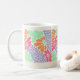 Design de caneca elegante e vibrante com padrões e cores cativantes, perfeito para adicionar charme aos momentos de café.