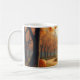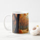 A xícara retrata uma estrada entre árvores compridas, abóboras na lateral da estrada e folhas coloridas de maple. Cores quentes e uma atmosfera acolhedora exaltam o clima de outono.