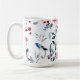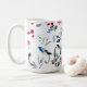 Um padrão floral delicado, pintado à mão, explode com energia lúdica — apresentando flores vermelhas vibrantes, folhas azul macio e cinzas graciosas que dançam sobre um fundo branco nítido. Perfeito para tecido, papel de parede, artigos de papelaria ou designs digitais que precisam de um toque de charme artístico e primavera.