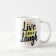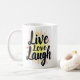 Esta imagem mostra a frase motivacional "Live Love Laugh" com um fundo brilhante e colorido, simbolizando alegria e positividade. O design geral é animador e animador, transmitindo uma mensagem positiva e motivacional.