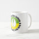 Caneca agradável para babalawos com o cowrie no cricle verde e amarelo. O texto é ao redor ibosheshe do iboya do iboru de Orula.
