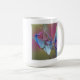 uma caneca de café com uma pintura contemporânea de "pássaros no alvorecer"