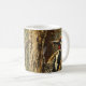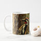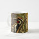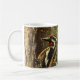 Esta caneca caracteriza a fotografia das belas artes do Sapsucker Amarelo-inchado (varius do Sphyrapicus), um pica-pau de tamanho médio encontrado em America do Norte, América Central e as ilhas das Caraíbas. É preto e branco com uma cabeça vermelha, uma garganta vermelha e uma barriga amarela do peito e a superior. Está levando a comida em seu grande bico para sua ninhada recentemente chocada que se está aninhando dentro de um tronco de árvore marrom tornado ôco nas madeiras.