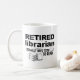 Esqueça a caneca de café do bibliotecário ou as meias do bibliotecário & agarre um destes! Faz o presente engraçado perfeito para seus melhor amigo, irmã, irmão, etc. que é um bibliotecário aposentado. Amarão certamente esta caneca quase tanto quanto amam ser aposentada!