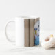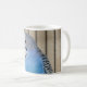 Esta caneca tem uma imagem de um parakeet azul.
