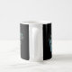 Caneca azul personalizada da música do saxofone. Uma luz - saxofone azul com notas musicais de roda em uma caneca preta. Preencha seu nome ou seu texto feito sob encomenda no alerta para personalizar e personalizar toda a maneira que você gostar. Um grande presente para seu jogador, músico ou melómano favorito de saxofone.
