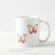 duas borboletas vermelhas em cada lado de uma caneca clássica.