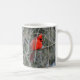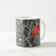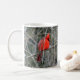 O cardeal vermelho brilhante com sua crista vermelha real está para fora em uma caneca cerâmica. Disponível em diversos tamanhos e estilos, este pássaro vermelho brilhante trava o olho!