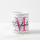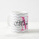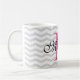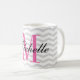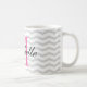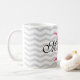 Caneca cinzenta personalizada do teste padrão da viga do monograma. Design monogrammed bonito da caneca de café com as listras cinzentas na moda do ziguezague. Aniversário bonito da tipografia ou ideia do presente do favor do casamento para homens, mulheres, amigos e família. Design à moda do ziguezague com tipografia elegante do roteiro. Cor feita sob encomenda para a letra inicial conhecida. rosa do néon do IE. Coffeemugs originais igualmente disponíveis como grandes copos desproporcionados e grandes para ir canecas de viagem