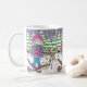 Uma caneca clássica bonito com a ilustração de uma menina que aprendem como esquiar e de algum cacau quente de Ghirardelli. Faz os presentes perfeitos do dia dos namorados para as meninas que amam esquiar:) ilustrações de ArianeC do ©