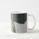 A imagem nas 11 onças., clássico, caneca de café é um wildflower cor-de-rosa-roxo vibrante da corriola que projeta-se através dos conselhos de uma cerca de madeira cinzenta, e molda uma sombra.