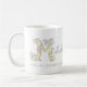 O desenho decorativo da mão de uma letra do capital M com nome e o significado agridem. O coração bonito e a flor doodled projetam a caracterização dos corações e as flores e as palavras M Michelle que é como o deus, fiel e bonito. Arte e design originais do © por Sarah Trett. www.sarahtrett.com para www.mylittleeden.com no zazzle