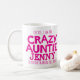 Caneca louca cor-de-rosa brilhante corajosa do slogan do texto do Auntie. Lê oh sim, eu sou o Auntie louco Jenny que todos o advertiu aproximadamente. Ou personalize com seu próprio nome. Design de texto por Sarah Trett para www.mylittleeden.com no zazzle.