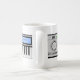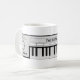 Uma caneca customizável com um design do teclado do sintetizador. O sintetizador tem um teclado de piano, botões do controle e botões. Uma indicação digital azul tem uma área de texto customizável.