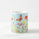 caneca da aguarela das flores selvagens e das borboletas do primavera para bebidas do chá, do café, as quentes ou do frio