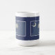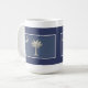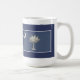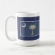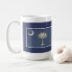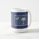 Esta caneca caracteriza uma reprodução no estilo da textura do grunge da bandeira do estado de South Carolina, do Palmetto e do crescente, no azul do desvanecer-olhar em um fundo azul mais escuro.