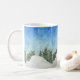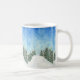 Pintura da aguarela e da tinta do céu do inverno, das árvores verdes, e da fuga do esqui na neve.