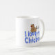 Caneca da galinha do amor. Eu amo minhas galinhas nas letras à moda, azuis com estrelas brilhantes. Nas letras são algumas galinhas bonitos. Na parte traseira da caneca é uma galinha alegre com seu nome. Desenho do vetor por American National Standard holandesa Collijn do ilustrador.