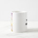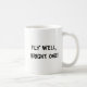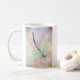 Uma libélula pensativa da aguarela enfeita o lado desta caneca, junto com a bênção: Mosca bem, a brilhante!