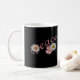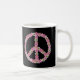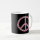 Esta caneca tem um símbolo de paz feito de flores cor-de-rosa e brancas em um lado e no outro a paz da palavra! Uma maneira calma de começar seu dia!