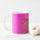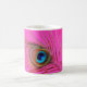 Caneca cor-de-rosa bonita com fim-acima colorido da pena do pavão.