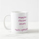 Pontilhe é a mascote do menina-bot para tech-girls.org, meninas de autorização não lucrativas para imaginar e conseguir seus sonhos do futuro. Esta caneca caracteriza o ponto roxo clássico e "imagine, descubra, criar" a divisa das tecnologia-meninas.